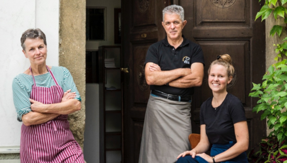 Der „Silberrücken“ und Herzstück an vorderster Front. Verantwortlich für den Service und die Weinberatung. Gemeinsam mit seinen charmanten Helferinnen.